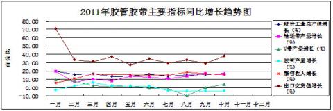 圖9:2011年膠管膠帶主要指標同比增長趨勢狀況