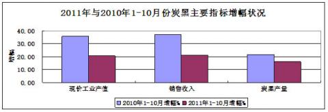 圖16:2011年與2010年1-10月份炭黑主要指標增幅對比狀況
