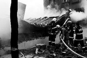 消防員正在緊張滅火