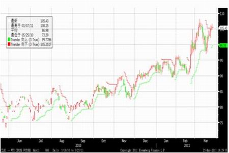 在日本大地震可能影響全球石油需求的預(yù)期下,國(guó)際原油價(jià)格連續(xù)大幅下跌,紐約商品交易所原油期貨失守100美元關(guān)口。不過,由日本強(qiáng)震所引發(fā)的核擴(kuò)散危機(jī)初步得到緩解。同時(shí),日本政府官員表示,除了三家煉油廠外,其他煉油廠目前均已恢復(fù)生產(chǎn)。到本月底,煉油廠日原油加工量有望達(dá)到340萬桶,從而緩解了市場(chǎng)對(duì)日本原油需求長(zhǎng)期下降的擔(dān)憂。隨即,國(guó)際原油期價(jià)大幅飆升,紐約商交所四月輕質(zhì)低硫原油期貨結(jié)算價(jià)重返100美元關(guān)口上方。