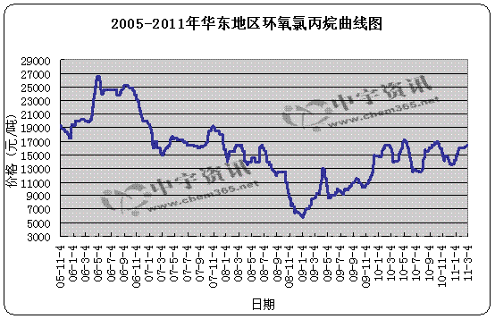 春節(jié)過(guò)后,華東地區(qū)環(huán)氧氯丙烷市場(chǎng)行情雖然上升幅度趨于保守,但是總體上行。進(jìn)入3月份,華東地區(qū)環(huán)氧氯丙烷的市場(chǎng)價(jià)格一直趨于平穩(wěn),無(wú)大幅度漲降,但總體價(jià)格處于上漲狀態(tài)。2月28 日,華東地區(qū)環(huán)氧氯丙烷市場(chǎng)商談價(jià)16000-16500元/噸;3月4日,華東地區(qū)承兌商談16500-17000元/噸。