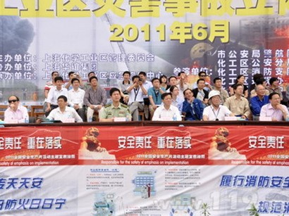 6月16日下午,上海化學(xué)工業(yè)區(qū)成功舉行大型化工裝置災(zāi)害事故應(yīng)急處置綜合演習(xí)。化工區(qū)管委會黨組書記徐建民、副主任陳兆麟,市消防局參謀長周建中,化工區(qū)發(fā)展有限公司黨委副書記嚴(yán)國基、副總經(jīng)理張淳,以及市經(jīng)信委、市安監(jiān)局、市公安局、市消防局、市應(yīng)急辦、市衛(wèi)生局、金山分區(qū)、奉賢分區(qū)等相關(guān)領(lǐng)導(dǎo)觀摩了此次演習(xí)。