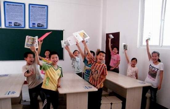 梓潼當地青少年收到PPG捐贈圖書后的喜悅表情