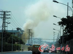 昨日下午1時50分左右,位于順德105國道附近的容奇大橋萊雅化工有限公司突然冒出濃煙、大火(見上圖),并伴有巨大的爆炸聲。附近正在上班的海信科龍空調廠3800多名員工,以及四周企業的另外1000多名員工,總共5000人被緊急疏散。