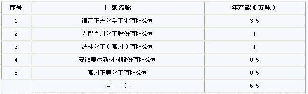 截止2010年國內偏苯三酸酐生產廠家、產能見下表: