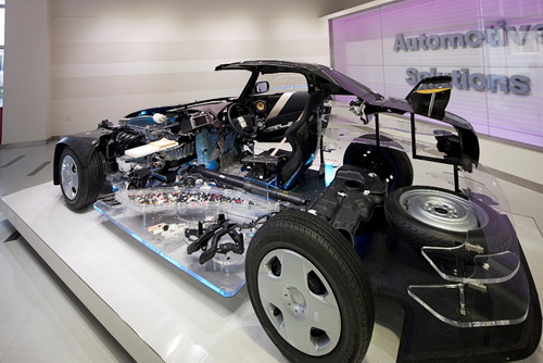 AMCC占地300㎡,綜合地介紹了東麗的汽車用產(chǎn)品。除了用先端材料所制的模型車,還設(shè)立了汽車零部件展示區(qū),材料所涉及的領(lǐng)域有“碳纖維復(fù)合材料”、“塑料”、“薄膜”、“電子信息材料”等。場內(nèi)也一并設(shè)立了交流區(qū),用以在來客觀看后,雙方商談,并向來客提供應(yīng)用解決方案。