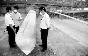 今年九月六日,巴陵石化公司生產的巴陵牌環氧樹脂通過風力發電領域德國勞氏船級社(GL)權威認證,成為國內第二家通過GL認證的同類企業。九月十六日,第一片采用巴陵牌環氧樹脂生產的風電葉片成型。據介紹,一片風電葉片重六噸,有近三分之一的材質要用環氧樹脂,這次將有四噸巴陵牌環氧樹脂成功使用。目前風電葉片廠家已經訂了二十二套共六十六片一百多噸巴陵牌環氧樹脂產品。圖為巴陵石化技術人員現場走訪風電葉片廠家。