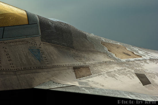 美軍在新式戰機上大量使用復合材料來達到減重目的。圖為F22戰機機體表面。