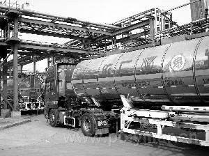 河南煤化安化集團(tuán)公司在穩(wěn)定傳統(tǒng)化工產(chǎn)品尿素的基礎(chǔ)上,著力發(fā)展精細(xì)化工產(chǎn)品。今年10月份,該公司精細(xì)化工產(chǎn)品二甲基甲酰胺的產(chǎn)量達(dá)到了1.47萬(wàn)噸,產(chǎn)品合格率和產(chǎn)銷率達(dá)到了100%。圖為該公司二甲基甲酰胺產(chǎn)品正在裝車外運(yùn)。