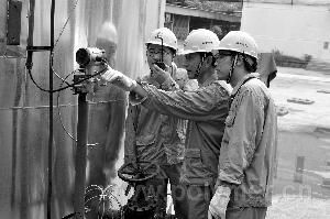 圖為揚(yáng)子職工正在調(diào)整裝置