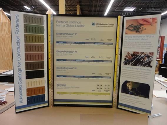 圖為 PPG 工業應用于建筑行業的緊固件涂料產品展示板