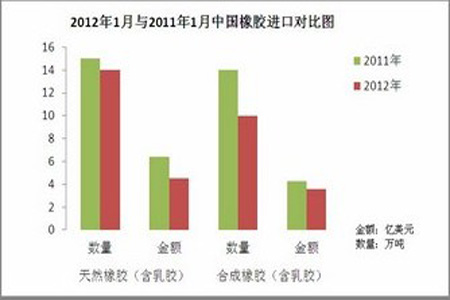 2012年1月與2011年1月中國橡膠進口對比圖