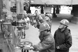哈爾濱石化公司天然氣替代燃料改造項(xiàng)目去年12月投用,截至今年2月中旬已累計(jì)消耗天然氣33萬(wàn)立方米,節(jié)約各項(xiàng)費(fèi)用68萬(wàn)元,同時(shí)各加熱爐、鍋爐熱效率得到有效提高,還減少了燃料使用量,增加了企業(yè)的經(jīng)濟(jì)效益。圖為操作人員正在調(diào)整加熱爐瓦斯系統(tǒng)。