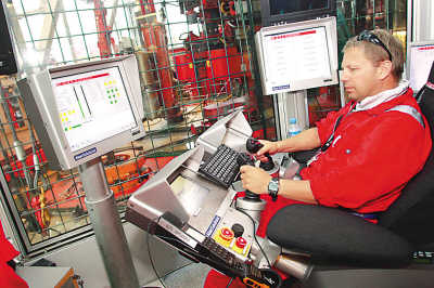 一年前,外籍技術人員在“海洋石油981”的控制室調試鉆井設備。