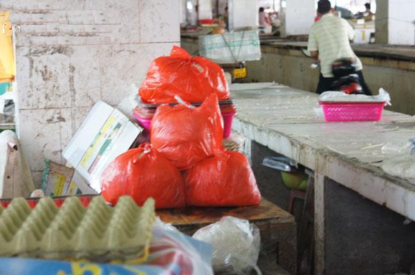 海口農(nóng)貿(mào)市場(chǎng)成堆的塑料袋