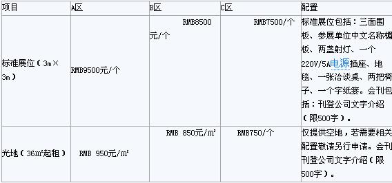 展會收費標準: