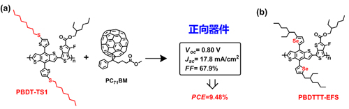 圖1 新型兩維共軛聚合物PBDT-TS1的分子結(jié)構(gòu)及其器件性能