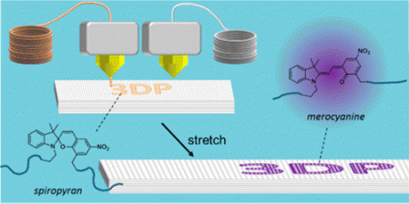 研究人員首先開發出一種牽張敏感性聚合物,這種材料能夠承受商用3D打印機打印頭熱端的高溫擠出而不改變顏色或損壞。