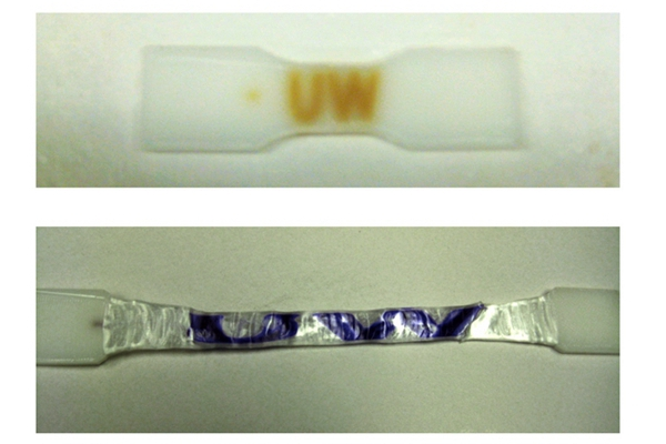 想象一下,如果能夠3D打印出可以對周圍的環境做出反應的分子,那將是什么樣一種情況?近日,華盛頓大學的一個研究項目將定制化學(customchemistry)和3D打印結合在一起,創建了一個骨狀的塑料標簽,這種塑料標簽在拉伸狀態下會變成紫色,從而提供了一種簡單的方法來記錄物體受到的力。