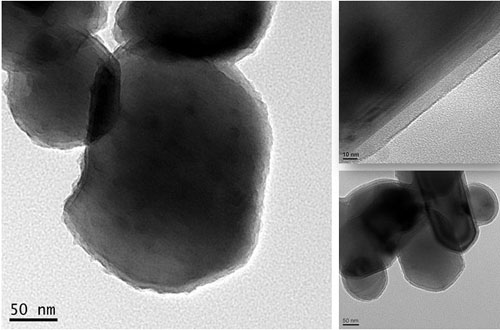 二氧化鈦表面包膜狀態(tài)TEM圖