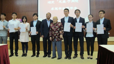 浙江龍盛集團(tuán)董事長、高分子科學(xué)系系友阮偉祥代表在企業(yè)界的高分子校友表達(dá)了對于同隱教授的祝福。浙江龍盛集團(tuán)10多年前即開始捐資復(fù)旦高分子科學(xué)系的師資發(fā)展和人才培養(yǎng)。今年設(shè)立的新一輪“龍盛-于同隱卓越獎(jiǎng)學(xué)金”主要獎(jiǎng)勵(lì)熱愛和有志于從事高分子科學(xué)研究的在讀本科生和研究生。當(dāng)天,于同隱教授與阮偉祥一起為今年獲得“龍盛—于同隱”卓越學(xué)生獎(jiǎng)學(xué)金的學(xué)生頒獎(jiǎng)并合影留念。