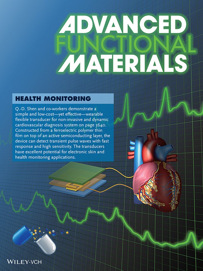 最近Advanced Functional Materials(2016, 26, 3640)報道了南京大學化學化工學院高分子系和生命化學協同創新中心沈群東教授課題組的一項研究。碩士研究生韓煦和陳昕發明了一種小型、低成本的鐵電高分子柔性傳感器,簡單地貼合在手腕等部位,能夠即時采集體淺表動脈的脈搏信號,獲得波形、波強、波速、節律等與心血管功能密切相關的參數;傳感器也能追蹤不同生理狀態下,如健身和服藥狀態下的脈搏波形變化,評估運動或血管擴張藥的效果。