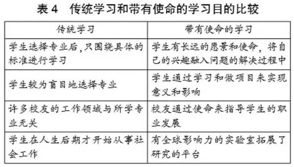 如此,斯坦福大學(xué)的畢業(yè)生才有能力、有意識、有擔(dān)當(dāng)去領(lǐng)導(dǎo)有效的實(shí)踐,以抵抗未來世界可能出現(xiàn)的一系列經(jīng)濟(jì)、政治、社會和技術(shù)以及目前未知領(lǐng)域的風(fēng)險。使命感本身不是對職業(yè)的描繪,但它是驅(qū)動個人在職業(yè)生涯中追求卓越的“秘密武器”(見表4)。