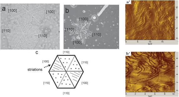 圖3:偏光顯微鏡和原子力顯微鏡觀察的嵌段高分子形貌