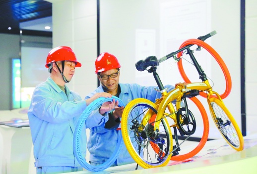 如今,他們研發的SEBS技術,已經進入尋常百姓家:無論是學生用的鉛筆橡膠頭、醫院用的輸液管,還是食品包裝、電線電纜、汽車內件……SEBS無處不在。目前國內“火爆”的共享單車,其實芯輪胎,就是梁紅文團隊在國內獨家研發成功的高性能綠色環保單車輪胎。