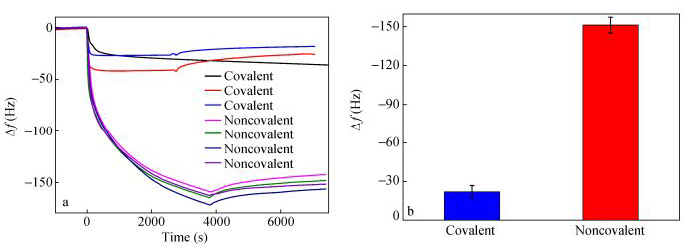 糖和凝集素蛋白質的特異性結合在精卵結合、病毒入侵,免疫防御等生命過程中扮演了很多非常重要的角色,因此開發新的研究糖和蛋白特異性結合的方法和平臺顯得尤為重要。石英晶體微天平(QCM)因為其靈敏度高,可對給體和受體的結合進行實時、原位檢測,是一種頗具特色的檢測手段。在檢測過程中,常需要將蛋白質固定在芯片表面。目前較為常見的固定蛋白質的方法有兩種,一種是共價鍵法,其優點是修飾牢固穩定,數據重現性好,缺點是效率低,步驟繁瑣;另一種是非共價鍵法,也就是物理吸附,優點是操作簡便快捷,缺點是穩定性和重現性差。因此開發新的高效蛋白質表面吸附方法顯得尤為重要。