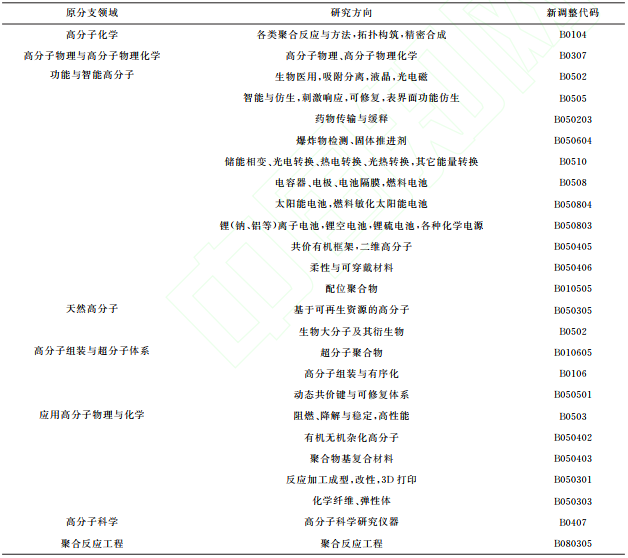 表1 國家自然科學基金化學科學部高分子領域主要研究方向申請與資助新調整代碼