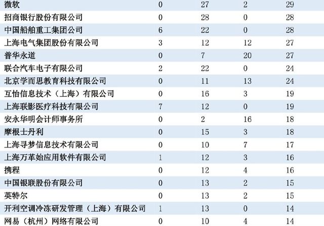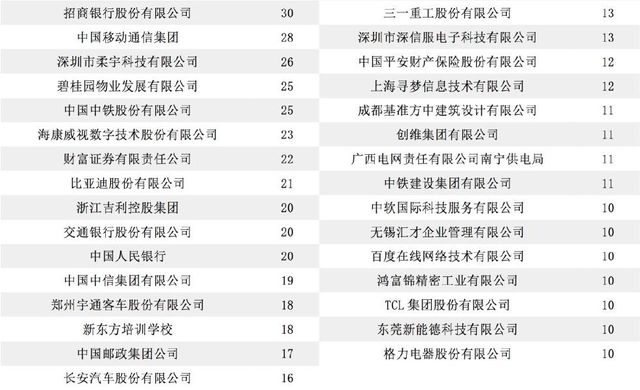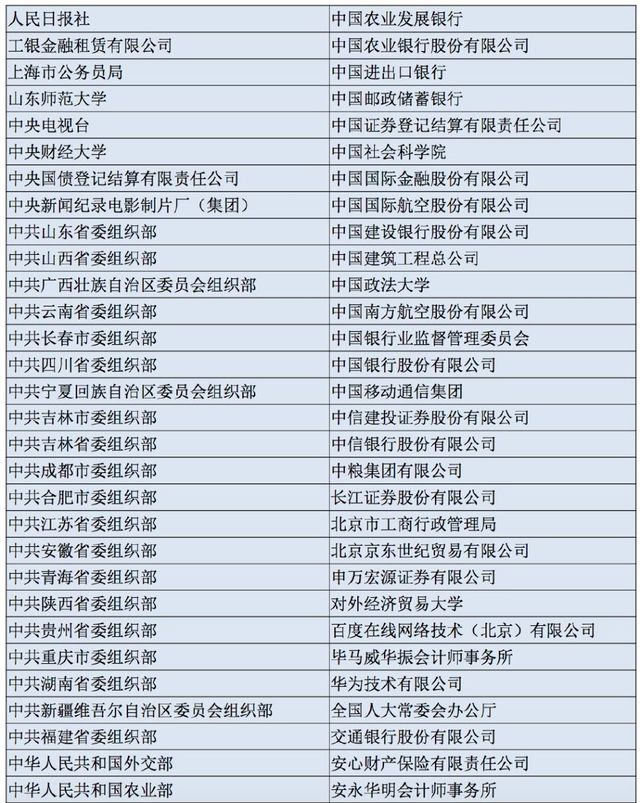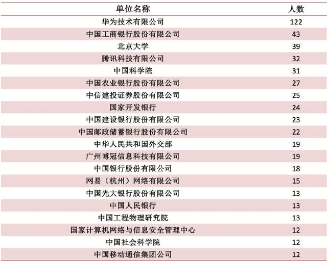 流向較多的企業除了華為、BAT等互聯網公司外,還包括中國工商銀行、中國農業銀行等金融機構以及國家電網等國有企業。