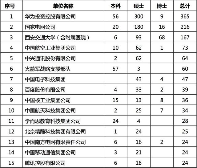 不過,與2016年一樣,今年華為依然成為接受一流大學建設高校畢業生最多的企業,一流大學建設高校進入華為畢業生人數較多的高校(超200人),包括:浙江大學(446人)、西安交通大學(365人)、東南大學(358人)、哈爾濱工業大學(269人)、南京大學(256人)上海交通大學(237人)和中國科學技術大學(248人)和武漢大學(223人)。