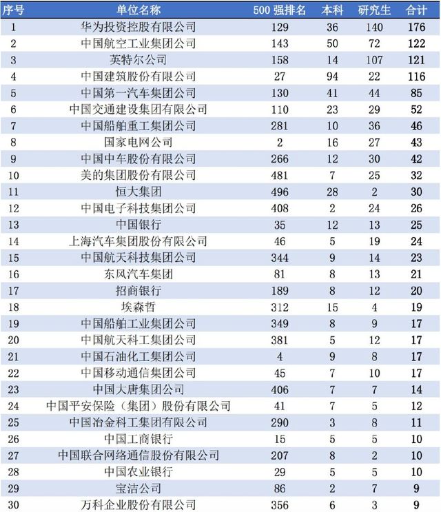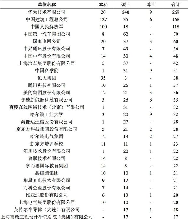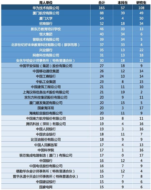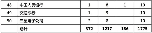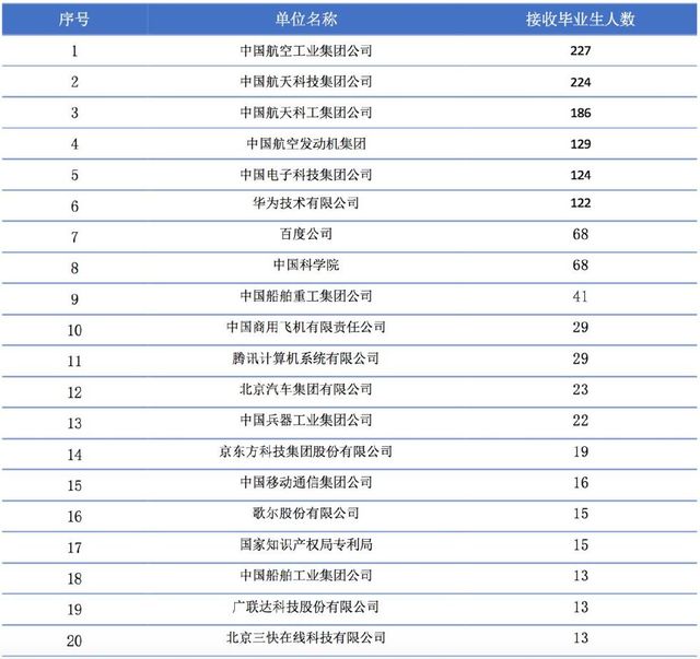 此外,北京大學和清華大學也分別有122人和182人,也是兩所高校畢業生就業最多的企業。