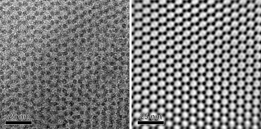 圖2. TEM照片展示FFT過濾前后的蜂巢結構。