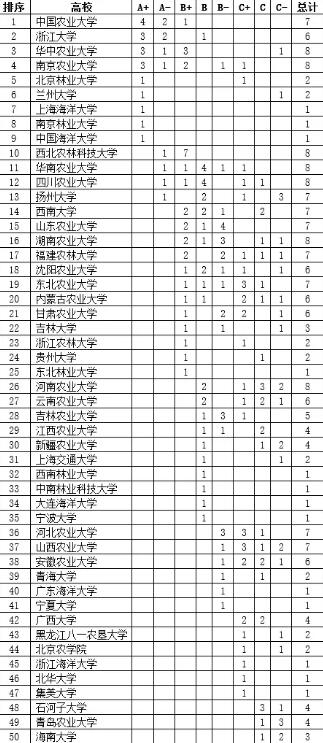 1. 選取在半數以上領域(4個)內具有學科獲得A+~C-分檔的高校進行排序