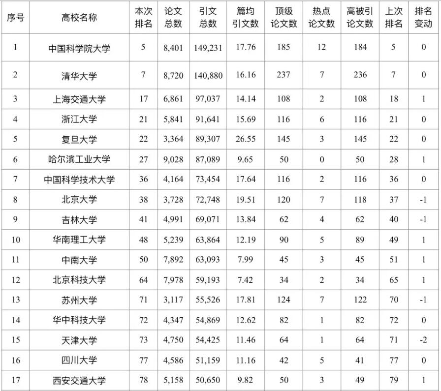3月15日,湯森路透發布2007年1月1日-2017年12月31日(十一年)期間論文統計數據ESI。
