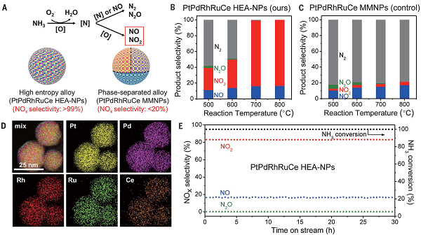 圖5 五元HEA-NPs(PtPdRhRuCe)用于氨氧化的催化性能