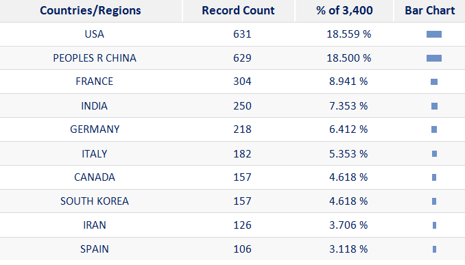 表1. 截至2017年,國際填充改性高分子流變學(xué)領(lǐng)域SCI論文發(fā)表最多的十個國家/地區(qū)