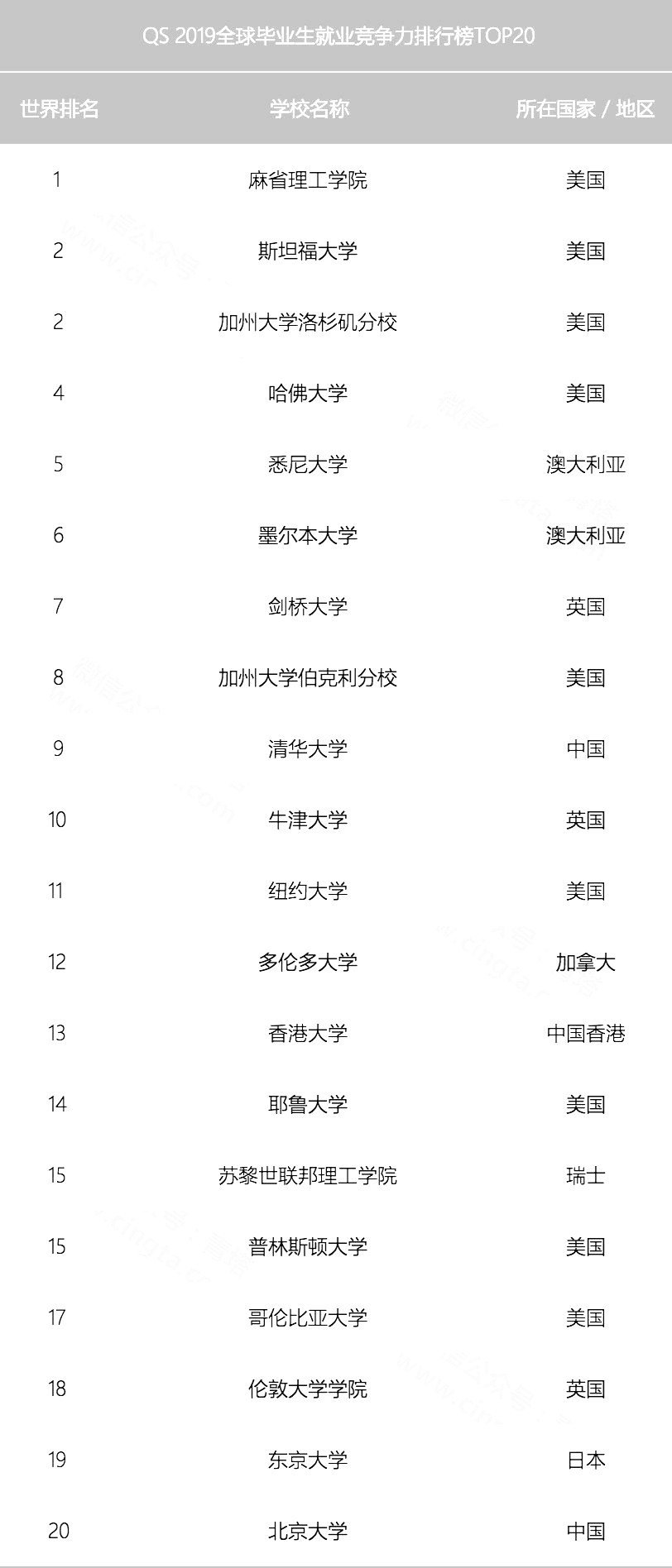 QS發布2019全球畢業生就業競爭力排行榜,清華全球第九