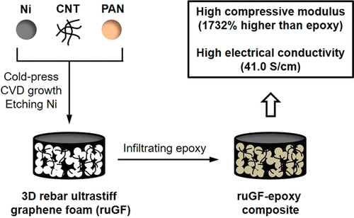 新方案技術用聚丙烯腈(PAN)制成更強的支架,聚丙烯腈是一種粉末狀聚合物樹脂,用作碳源,與鎳粉混合。在四步過程中,他們冷壓材料使其致密,在爐子中加熱使PAN變成石墨烯,化學處理所得材料以去除鎳,并使用真空將環氧樹脂拉入現有多孔材料中。