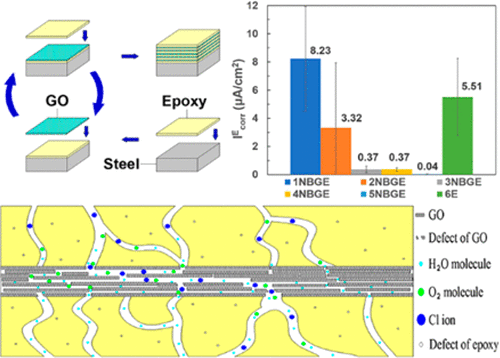 針對(duì)限制石墨烯高分子防腐涂料性能提升的瓶頸問題,即石墨烯難以分散與空間分布難以控制等問題,哈爾濱工業(yè)大學(xué)土木學(xué)院青年教師鐘晶博士課題組與華盛頓州立大學(xué)石鮮明教授課題組合作,首次提出了基于貝殼仿生結(jié)構(gòu)的防腐策略,通過旋轉(zhuǎn)法層層組裝方法,制備了氧化石墨烯/環(huán)氧樹脂復(fù)合涂層。由于石墨烯在該復(fù)合涂層內(nèi)形成了平行致密堆疊結(jié)構(gòu),不僅完全避免了石墨烯的分散問題,而且可以完美阻隔氯離子等腐蝕介質(zhì)的滲透,從而實(shí)現(xiàn)了只用常用環(huán)氧樹脂涂層的50%厚度(17微米)就可以使腐蝕速度降低20倍。