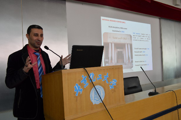 2019年1月4日下午,埃及國家研究中心(National Research Centre (NRC), Egypt)Hossam El-Sayed Emam Soliman教授應邀在北京化工大學科學會堂二樓作了題為“Materials Science in Textile Chemistry——Generic Strategies for Functionalization of Cellulosic Textiles”的精彩報告。本次報告由北京化工大學材料科學與工程學院劉勇主持。