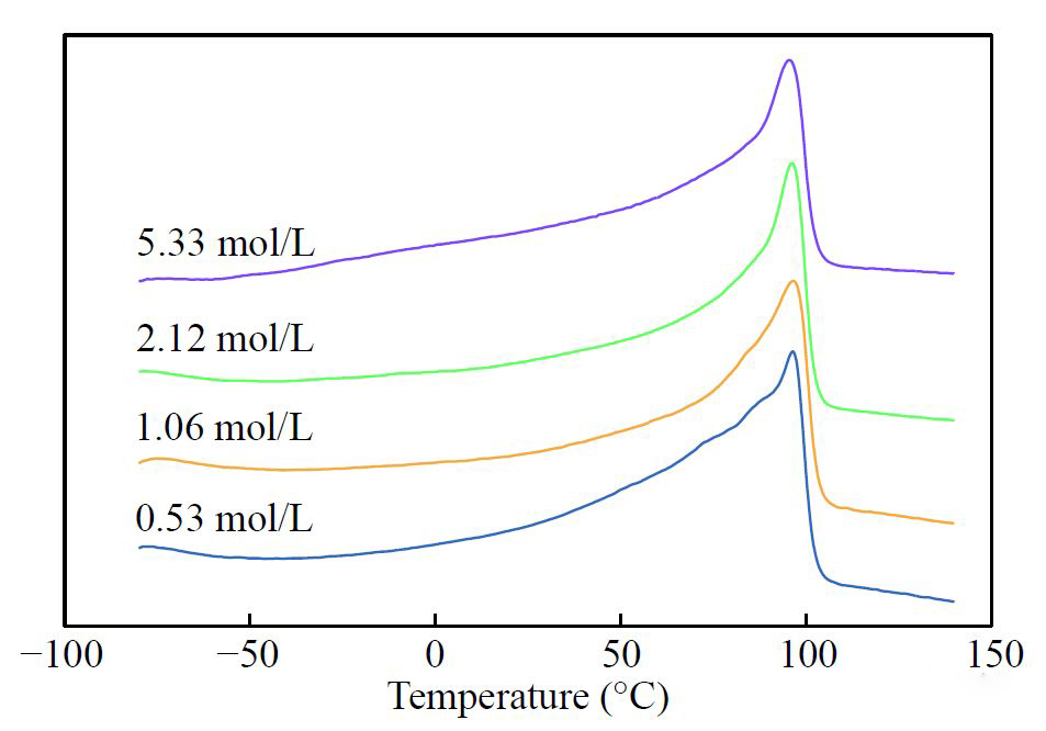 圖3. α-二胺基鎳配合物在不同單體濃度下所得聚1-己烯DSC曲線
