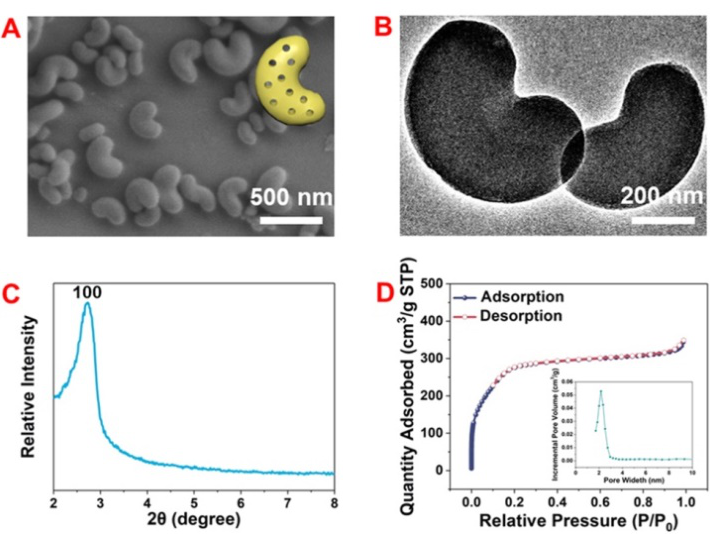 圖2. MSNB的SEM, TEM, XRD及BET表征。(圖片來源:Chem. Commun.)