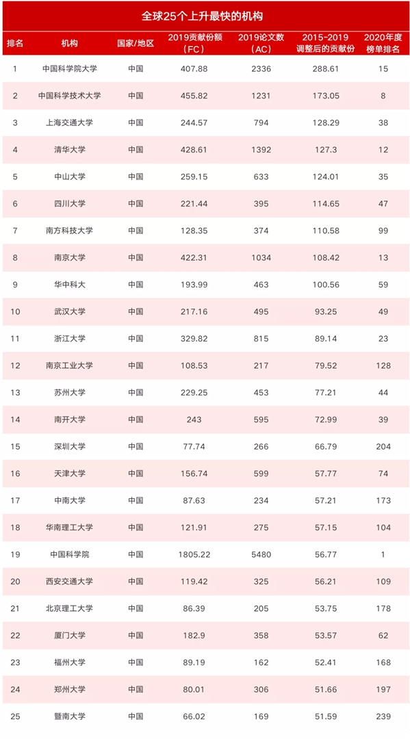 - 全球學術排名出爐:21所中國大學/機構位居世界100強 2020-07-06
