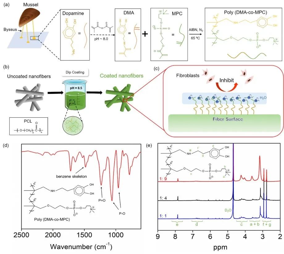 靜電紡絲是制造功能性納米纖維的一項強大技術,可通過優化其物料組成、表面改性等手段,開發出具有獨特性能的電紡納米纖維膜。在生物醫學應用中,經常通過調整納米纖維的表面性能(例如,纖維定向排列)來實現特定的細胞粘附和促進組織修復。但是在某些情況下,預防細胞粘附反而是我們需要的,例如治療肌腱等組織粘連時。通過負載活性藥物構建出的電紡纖維膜,雖然有良好的抗細胞粘附能力,但藥物潛在的副作用往往會限制其進一步的應用。因此,開發出不含任何藥物成分的的抗細胞粘附電紡納米纖維具有廣闊的應用前景。