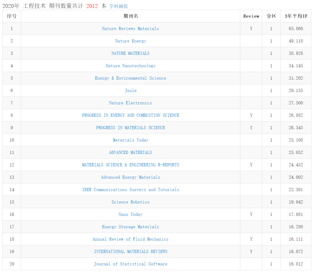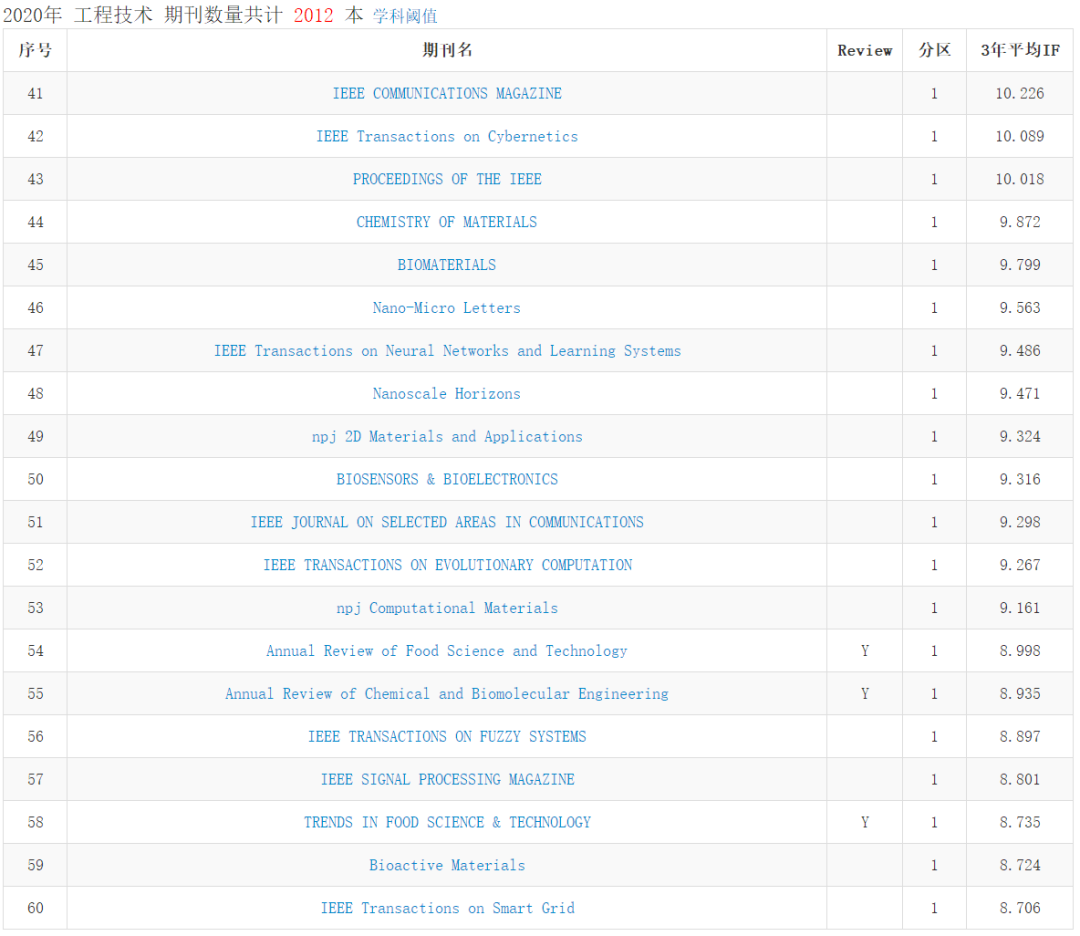 工程技術 期刊數量共計 2012 本,前60名如下: