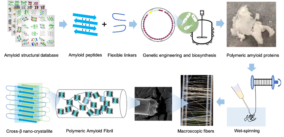 圖1. 淀粉樣聚合蛋白纖維絲的合成流程