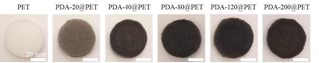 2) 該技術易于實施且具備環境可持續性。本研究中的原材料是市售的低成本粗效過濾器,且負載物PDA是一種環保型可生物降解的粘合劑。PDA@PET過濾材料的制造過程簡便,不使用和產生污染環境的物質,可以實現工業化量產